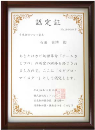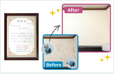 弊社は、カビ処理の優れた技術を持つ「チーク真備プロ」「カビプロマイスター」のプロフェッショナルチームとして、頑固な「カビ汚れ」を落とす「カビ処理革命」正規施工代理店に認定されております。