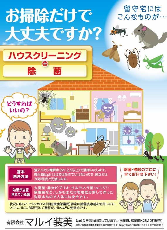 有限会社マルイ装美では富岡町・楢葉町・浪江町・大熊町のハウスクリーニング補助金にもすべて対応しております。